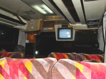 | ◇ JO8895便 BOEING 767-300機内にて ◇ 話をパラオ旅行に戻しましょう。しばらくすると天井から、にゅうっと液晶画面が降りてきました。そして機内安全設備の説明ビデオを終えると、またにゅうっと音もなく吸い込まれていきました。さて、今回は先日沖縄に行った際に録音してきた現地情報の、いわゆるテープ起こしをパラオに行く前に済ませようと思います。しかしベルト着用のランプが消えないとテーブルを出せないので、仕事ができません。ようやく「本日は我々8人のクルーで運行します」とのアナウンスととともにベルト着用サインが消えると、前方スクリーンでNHKニュースが始まりました。インドの事件とかタイでの騒動とか、いずれも世の中あまり明るいニュースはなさそうです。 |