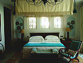 | バトラー助手君がホテルの人に説明をしてくれたので、すぐに部屋を見ることができました。ここはデラックス・バルコニー・ルームという、スタンダード・タイプの部屋です。ミナ・サラームでは一番面積が小さい部屋ですが、たっぷり空間をとった広々とした造りをしています。一つ一つの家具、調度品、窓の形にいたるまでこだわりが感じられ、おしゃれでエキゾチックな雰囲気を満喫できそうです。 |