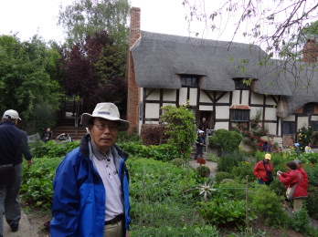 | その後、アン・ハサウエイ(シェイクスピア夫人)の家の庭のみ見学し、ホリデーイン・ホテル到着後すぐに歩いて10分位のシェイクスピアの家を訪問した。 |