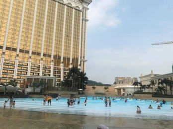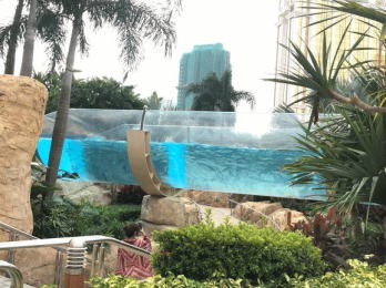 | こちらはギャラクシーのプール。マリオット、ギャラクシー、オークラ、リッツカールトン、バンヤンツリーが共有の大きなプールリゾートです。流れるプールは世界最長です。。 |